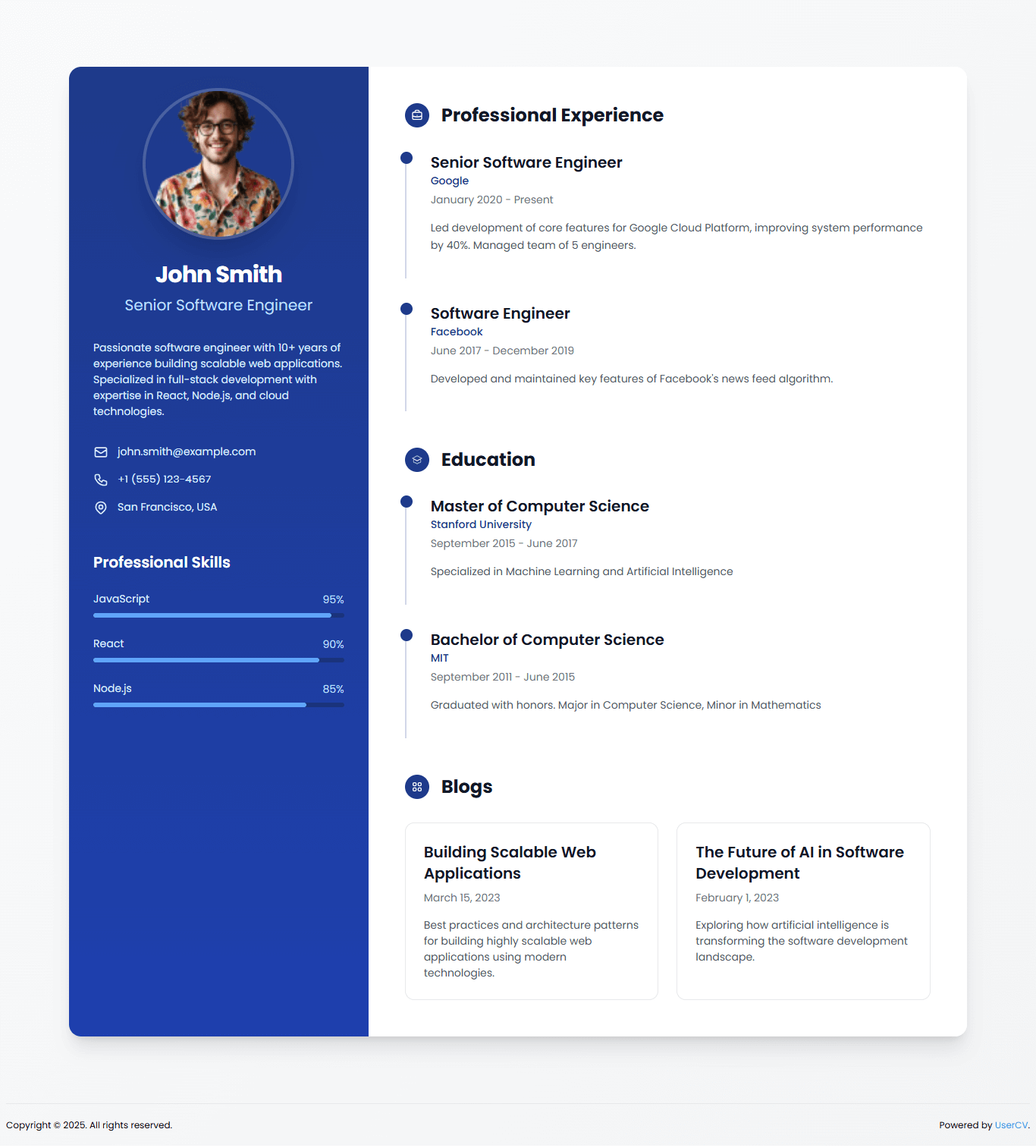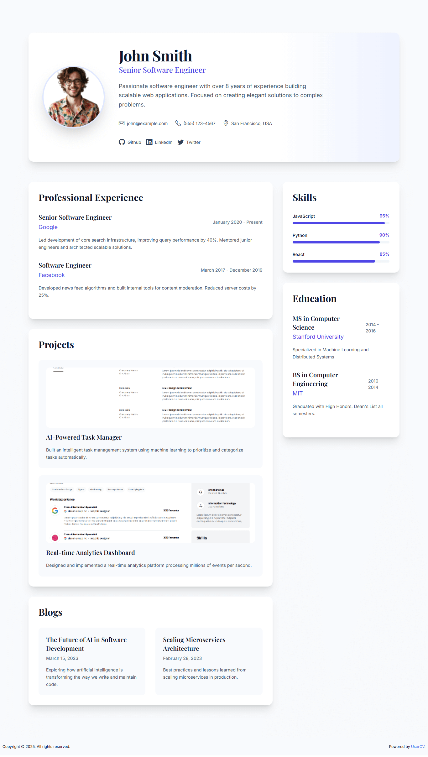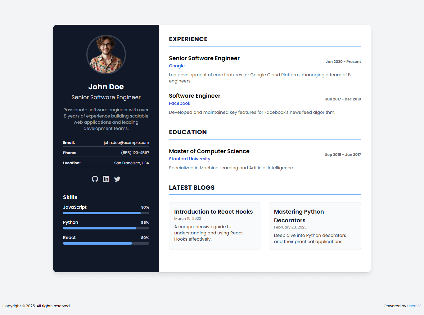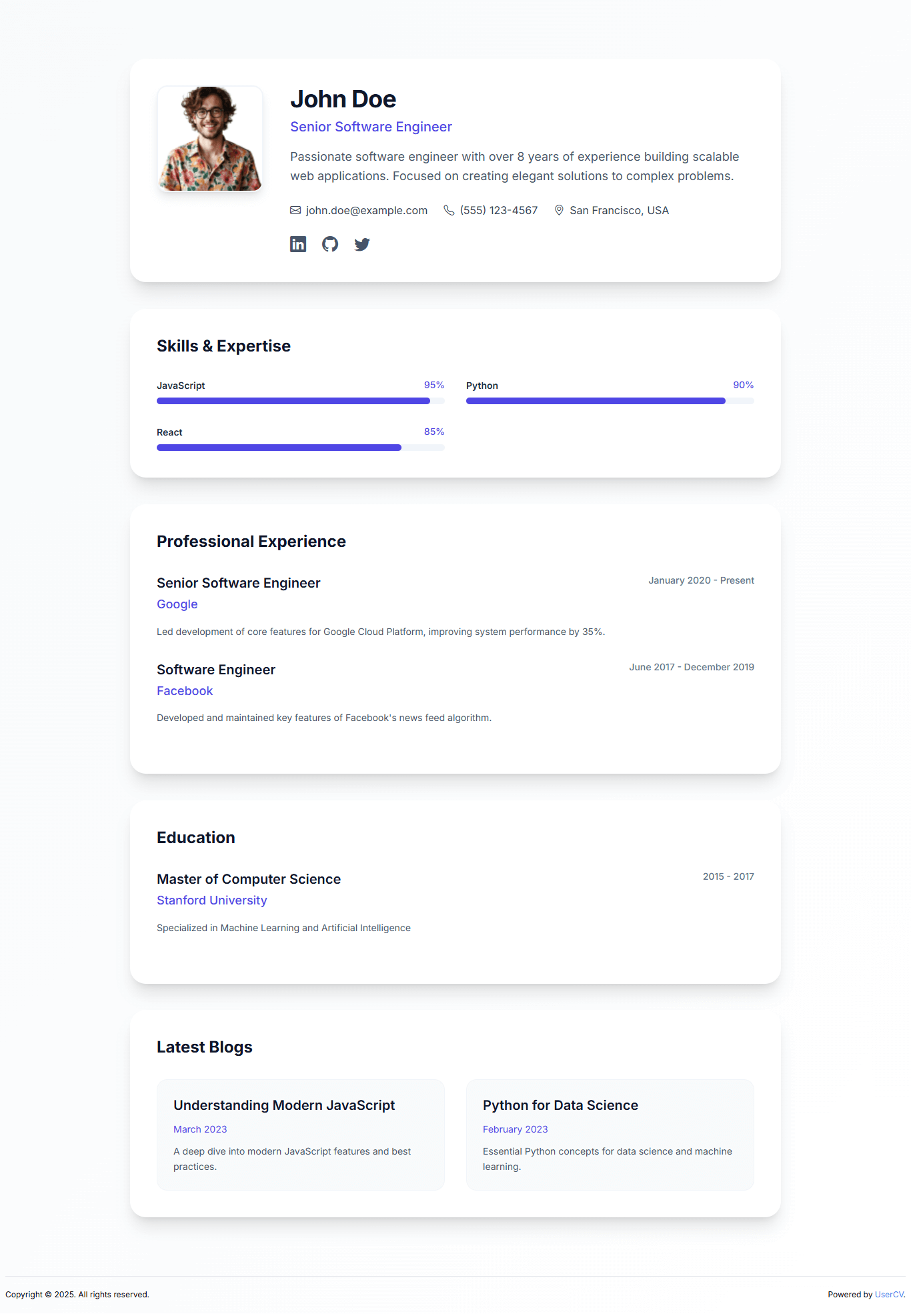 Create a stunning single-page website that showcases your skills, experience, and personality. No coding required.